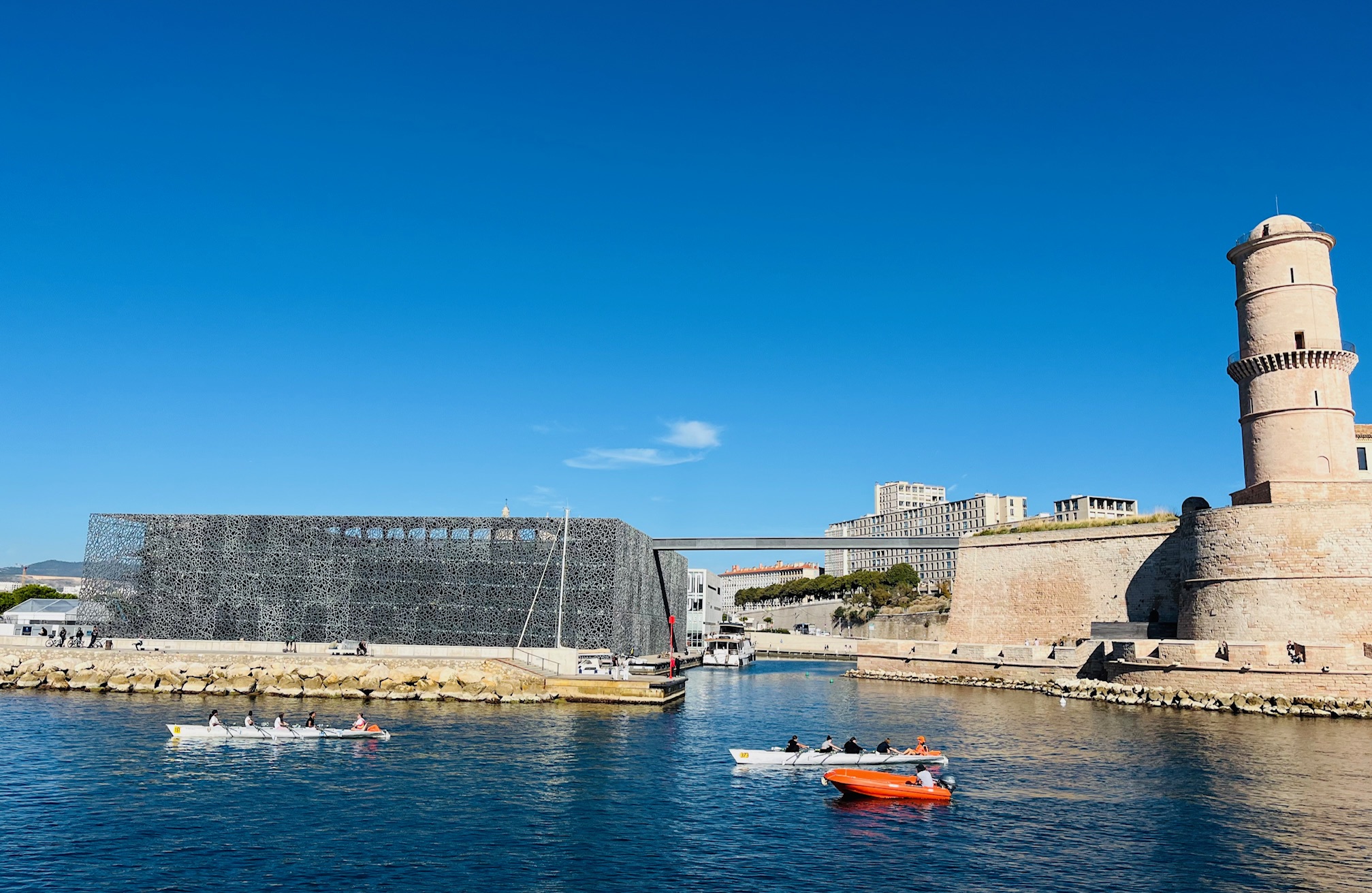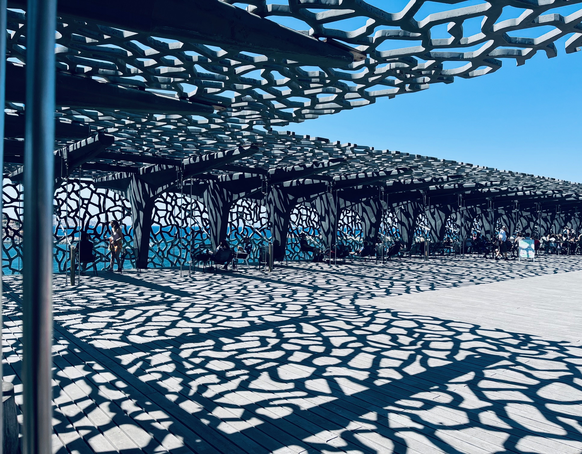Am Donnerstag wurde‘s wieder kulturell: Im MUCEM sahen wir spannende Ausstellungen in einem modernen Gebäudekomplex, der eine gelungene Brücke schlägt zur historischen Dimension der Kulturvielfalt des Mittelmeerraums. Am Nachmittag gab es dann Stadion-Feeling im Vélodrome oder Design pur in Le Corbusiers Cité Radieuse.